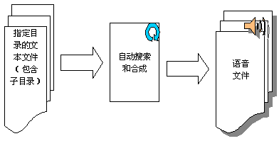 系統(tǒng)功能實(shí)現(xiàn)示意圖如下圖,離線合成系統(tǒng)可以自動搜索指定目錄(可包含子目錄)的文本文件,并按指定的規(guī)則生成相應(yīng)的語音文件。
