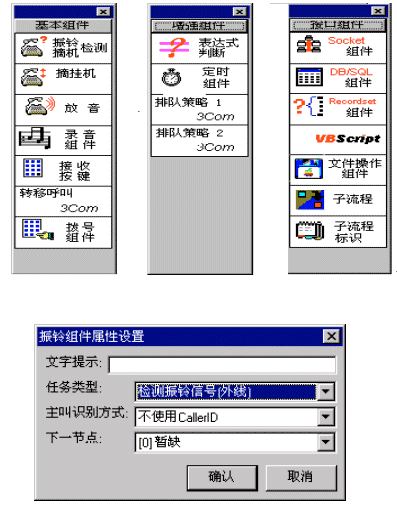 IVR:兩種方案的呼叫中心,目前的IVR系統(tǒng),均采用計(jì)算機(jī)語(yǔ)音卡方式進(jìn)行集成。這些語(yǔ)音板卡,既可以采用目前流行的板卡,也可以采用自行設(shè)計(jì)的板卡。利用廠商提供的API接口,開(kāi)發(fā)者可以編寫(xiě)各種語(yǔ)音流程業(yè)務(wù)。PBX交換機(jī)方案的IVR一般由PBX廠家作了主要的功能開(kāi)發(fā),使用者只須應(yīng)用、配置;谡Z(yǔ)音板卡的呼叫中心一般板卡廠家提供API接口,開(kāi)發(fā)者應(yīng)用開(kāi)發(fā)的靈活性較大。