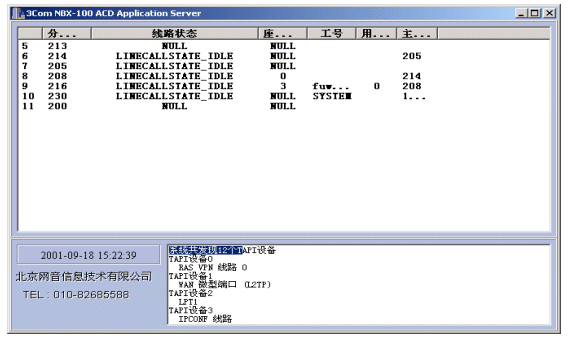 NBX呼叫中心的核心設(shè)備是3Com公司的NBX網(wǎng)絡(luò)交換機(jī),NBX網(wǎng)絡(luò)交換機(jī)支持開(kāi)放式電話開(kāi)發(fā)平臺(tái)TAPI2.X,TAPI它是Microsoft電話技術(shù)應(yīng)用程序編程界面標(biāo)準(zhǔn),運(yùn)用TAPI可以方便、高效地完成針對(duì)語(yǔ)音線路的控制開(kāi)發(fā),從而完成自動(dòng)語(yǔ)音應(yīng)答(IVR)、自動(dòng)話路分配(ACD)、以及坐席接待、計(jì)費(fèi)、錄音等需求。使用TAPI這種標(biāo)準(zhǔn)使得用戶(hù)可以集成第三方CTI程序以完成各種高級(jí)需求。