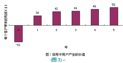 以信用卡服務(wù)為例,爭取一個(gè)新的用戶平均要51美圓,用于廣告、推銷和開戶等開支。用戶開始時(shí)花錢很少,但為公司帶來一定的利潤。但如果用戶繼續(xù)使用到第二年,就會(huì)為公司帶來更多的經(jīng)濟(jì)效益,因?yàn)楣九c客戶之間的信任和客戶對(duì)公司的滿意,致使客戶更多地通過信用卡消費(fèi)。(圖:"信用卡用戶產(chǎn)生的價(jià)值")用戶貢獻(xiàn)在增加,公司的運(yùn)作費(fèi)用卻在不斷減低。信用卡公司可以不斷減少對(duì)客戶信用的審核時(shí)間。保持長期的客戶關(guān)系,還可以減少廣告支出,客戶本身就是一個(gè)免費(fèi)的廣告資源。很多人在消費(fèi)前喜歡聽取朋友的意見,覺得比廣告更可信。