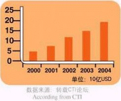 - 在CRM方面,2000年產(chǎn)值為50億美元,預計在2004年市場產(chǎn)值將達到190億美元。