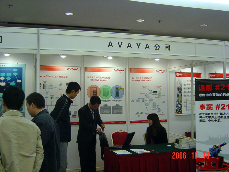 。。2006年10月18日,2006保險(xiǎn)業(yè)呼叫中心應(yīng)用暨電話營(yíng)銷高峰研討會(huì)在北京天鴻科園大酒店隆重召開,以下是展廳參觀的相關(guān)圖片報(bào)道: