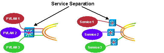 利用這種設計,服務必須在連接網絡主體前進行劃分。圖1右側對在DWDM網絡中將各項服務分配至不同設備的方式進行了介紹。 這樣就形成了融合物理骨干網,但各網絡獨立。這種融合骨干、獨立網絡的方式實現了非常高的網絡安全性,但也增加了開支。圖1左側介紹了獨立于DWDM環(huán)的單一設備,服務是由虛擬LAN(VLAN)或專用VLAN來劃分的。