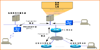 (TACAS:Terminal Access Controller Access Control System--終端訪問控制系統(tǒng))有了這樣的服務(wù)器以后,連接在這個網(wǎng)絡(luò)的所有用戶,不管它需要以什么樣的方式訪問網(wǎng)絡(luò)設(shè)備,都必須通過服務(wù)器的安全性監(jiān)測。由于服務(wù)器上可以運(yùn)行功能很強(qiáng)的安全性方面的軟件,可以完全滿足BOSS系統(tǒng)的安全需求。在路由器、撥號訪問服務(wù)器和安全服務(wù)器之間傳送的可以是經(jīng)過加密的有關(guān)網(wǎng)絡(luò)安全協(xié)議的數(shù)據(jù)流。