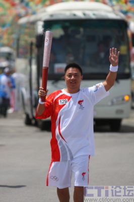 作為奧運圣火傳遞青海湖站的一員,廣州佳都國際董事長、新太科技股份有限公司董事長劉偉先生,在青海湖標志性建筑——八寶如意前,接過第129棒奧運火炬。隨后,他將火炬高高舉起,一路頻頻微笑揮手,在經過近38米的傳遞后,劉偉將圣火順利傳遞給下一棒火炬手,圓滿地完成了這次火炬手之旅。