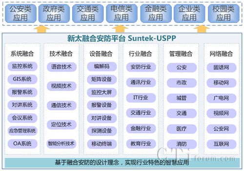 新太融合安防平臺(tái)(SUNTEK-USPP)是基于現(xiàn)代安防和融合通信技術(shù),集海量信息采集、智能分析、精準(zhǔn)處理于一體的國(guó)內(nèi)一流,國(guó)際領(lǐng)先的安防綜合應(yīng)用管理平臺(tái)。平臺(tái)采用開(kāi)放的技術(shù)框架,通過(guò)對(duì)公共安全領(lǐng)域的信息管理、治安管理、安全防范和應(yīng)急指揮等進(jìn)行系統(tǒng)融合、資源共享和功能聯(lián)動(dòng),實(shí)現(xiàn)人防、物防、技防等各種資源和手段的有效整合,達(dá)到信息共享、資源調(diào)度、決策指揮的高度統(tǒng)一、靈活運(yùn)轉(zhuǎn)和及時(shí)有效。