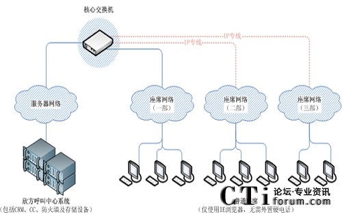 河北博岳呼叫中心職場分為1個(gè)中心職場和2個(gè)分部,之間相隔幾公里至幾十公里,以VoIP通路連接,所有職場統(tǒng)一管理,最大程度的適應(yīng)了呼叫中心建設(shè)的個(gè)性化需求,同時(shí),這種布局還大大降低了租用場地的成本,也方便話務(wù)員就近上班。