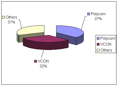 企業(yè)個人桌面視頻會議市場在2001年遭受銷售量和銷售額的巨大萎縮,F(xiàn)在的市場特征是生產(chǎn)商數(shù)量極為有限,大量市場機會尚未被開發(fā)。2001年,銷售額為2610萬美元,較2000年巨幅下降46.1%,