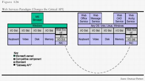 今天,由于業(yè)內(nèi)各企業(yè)普遍明白了控制價(jià)值鏈中操作平臺(tái)和應(yīng)用平臺(tái)的重要性,因此靠壟斷本身來(lái)贏利容易受到全行業(yè)的抵制,微軟的策略是在操作平臺(tái)和應(yīng)用平臺(tái)上形成壟斷后,靠應(yīng)用來(lái)贏利,這樣大大增加了贏利的隱蔽性,業(yè)界比較容易接受!