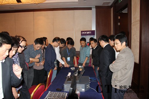 茶歇時(shí)間,嘉賓迫不及待走到東進(jìn)keygoe產(chǎn)品演示臺(tái)參觀,并與東進(jìn)工程師從技術(shù)、產(chǎn)品和應(yīng)用方面熱烈交流,尤其是對(duì)東進(jìn)帶來的兩套演示系統(tǒng)興趣濃厚,都有親密接觸一把的興致。