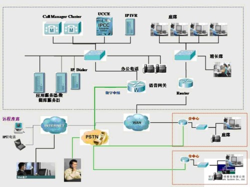 IP聯(lián)絡(luò)中心(IPCC)是Unified Communication解決方案的一個(gè)組成部分,在Unified Communication Manager系統(tǒng)的基礎(chǔ)上,通過Unified Contact Center Enterprise(UCCE)或Unified Contact Center Express(UCCX)提供完整的呼叫中心功能,包括靈活定制的路由分配策略,豐富的座席、班長(zhǎng)席桌面應(yīng)用,強(qiáng)大的預(yù)測(cè)與預(yù)覽式外撥管理工具,完善的基于瀏覽器的報(bào)表工具及模板和統(tǒng)一的系統(tǒng)管理工具等。