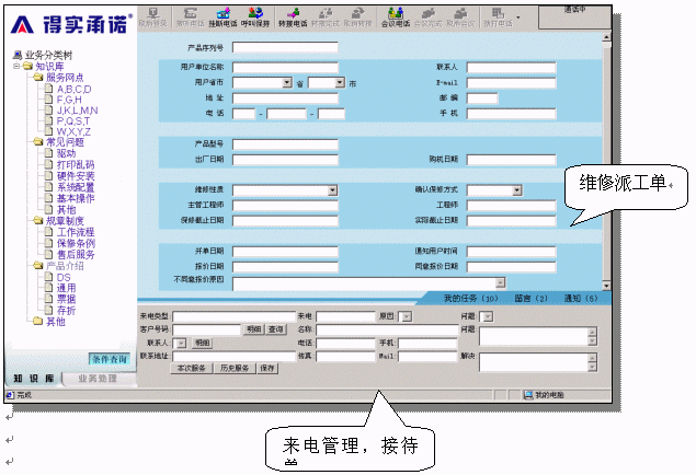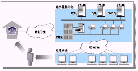 客戶通過集中的客戶服務(wù)中心咨詢產(chǎn)品信息、要求技術(shù)支持、申報產(chǎn)品維修,客戶得到了統(tǒng)一、規(guī)范的服務(wù)?蛻舴⻊(wù)中心集中管理著客戶信息、產(chǎn)品信息、分銷商信息、維修網(wǎng)點信息和客戶的購買、維修紀錄?蛻舴⻊(wù)中心收到客戶請求后,利用上述信息構(gòu)成完整的工單,通過互聯(lián)網(wǎng)派發(fā)到有關(guān)的維修網(wǎng)點。維修網(wǎng)點上門服務(wù)后,又將處理結(jié)果反饋回客戶服務(wù)中心。從而基于呼叫中心和互聯(lián)網(wǎng)技術(shù),構(gòu)成了一個完整的閉環(huán)業(yè)務(wù)服務(wù)流程。