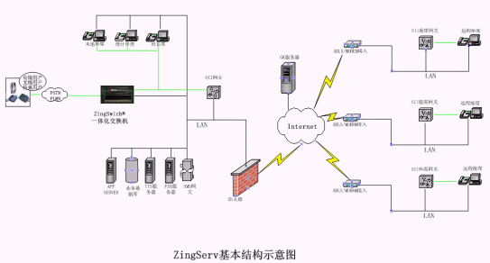硬件:中心點有ZingSwitch®,O口網(wǎng)關和內(nèi)線卡,VPN動態(tài)注冊服務器和VPN設備,或GK服務器。座席端配置S口網(wǎng)關,根據(jù)需求配置相應的VPN設備。