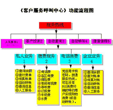 上圖是整個《銀行客戶服務(wù)呼叫中心》的主功能流程圖