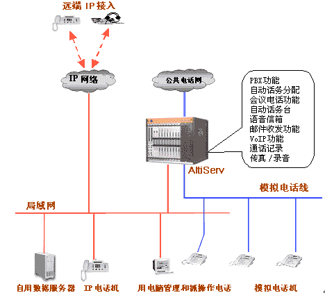 - 電話系統(tǒng)與傳統(tǒng)的交換機(jī)連為一個(gè)統(tǒng)一的通訊整體