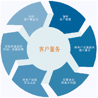 客戶服務不僅限于把公司提供給客戶使用?蛻舴⻊帐桥c客戶交互的一個完整過程,包括聽取客戶的問題和要求,對客戶的需要作出反應并探詢客戶新的需求。我們真的不能將其看成一個簡單的過程?蛻舴⻊湛梢杂靡粋復雜的循環(huán)來表示,其中不僅僅包括了客戶和客戶服務部門,實際上包括了整個公司,即把公司整體作為一個受客戶需求驅動的對象。