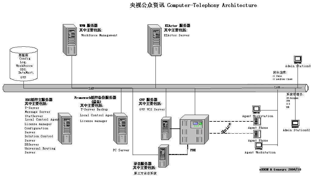 由于簽約時距離2005年春節(jié)聯歡晚會只有不足2個月的時間,勝利完成春節(jié)聯歡晚會時的電話服務工作就成為CCTV公眾資訊中心和eSOON的最大目標。因為用戶采用了成熟的eSOON解決方案(CTI-Genesys ERS;IVR-Genesys GVP;CRM-eSOON EZactor),所以整個系統在短短一個月內就完成了上線工作。在經過詳細的測試及全面的人員培訓后整個系統經受住了春節(jié)聯歡晚會的考驗,圓滿完成了晚會的電話、短信的支撐工作。徹底擺脫了前幾年系統不堪應付突發(fā)大量呼叫的窘境,提升了CCTV公眾資訊有限公司的服務品質。