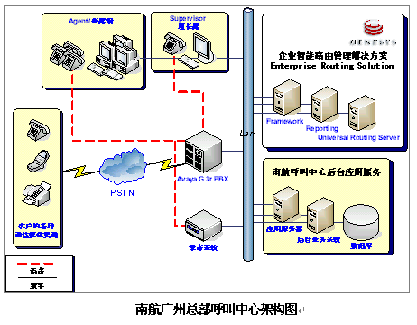 始自2002年eSOON & Genesys 成為南方航空的CTI軟件提供商,為其打造全國(guó)客服中心網(wǎng)絡(luò)。 廣州是南方航空公司的總部所在,自然就成為全國(guó)網(wǎng)絡(luò)的中心;除廣州以外,南方航空還擁有全國(guó)10個(gè)地區(qū)的航線基地,絕大部分基地均為省會(huì)城市或主要商業(yè)中心。到目前為止,作為網(wǎng)絡(luò)據(jù)點(diǎn)的貴陽(yáng)、長(zhǎng)沙、烏魯木齊、沈陽(yáng)、深圳、珠海、汕頭以及海口等分點(diǎn)已成功投入使用,另湖北、河北等省份的中心城市也在規(guī)劃階段中。