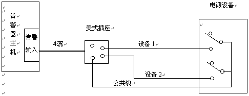 電源、UPS設(shè)備的告警信號(hào)從告警器后面板告警輸入接口輸入,通過(guò)四蕊電話(huà)線相連。一臺(tái)主機(jī)可收集五種告警。連接距離可達(dá)5公里。
