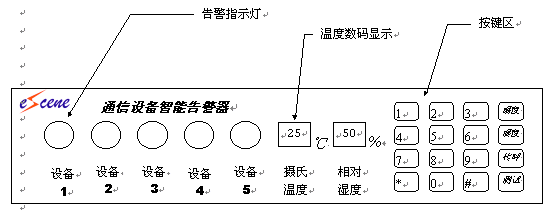 本告警器通過(guò)外接傳感器測(cè)量機(jī)房溫、濕度。測(cè)量值以數(shù)字形式直接顯示在前面板上。當(dāng)測(cè)量值超出預(yù)先設(shè)定的門(mén)限時(shí),本機(jī)立即發(fā)出報(bào)警。門(mén)限值可通過(guò)前面板上按鍵來(lái)進(jìn)行設(shè)定。傳感器通過(guò)四蕊電話(huà)線與本機(jī)相連,連線距離可達(dá)3公里。