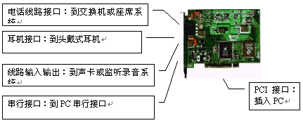 IN和LINE OUT接口,與聲卡配合實現(xiàn)語音錄放;計算機通過串行口實現(xiàn)對座席卡的控制。