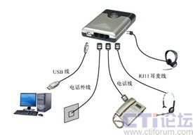“話務(wù)通”設(shè)計新穎,接口包括電話線路接口、電話機接口、耳機接口和USB通信接口。配置立體聲揚聲器和環(huán)型提示燈,提供聲光提示!霸拕(wù)通”能夠提供IP網(wǎng)絡(luò)電話,自動應答,自動外撥,來電彈屏,語音錄放,語音留言等功能。