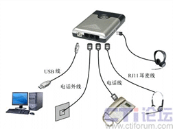 “話務(wù)通”設(shè)計(jì)新穎,接口包括電話線路接口、電話機(jī)接口、耳機(jī)接口和USB通信接口。配置立體聲揚(yáng)聲器和環(huán)型提示燈,提供聲光提示!霸拕(wù)通”能夠提供IP網(wǎng)絡(luò)電話,自動(dòng)應(yīng)答,自動(dòng)外撥,來電彈屏,語音錄放,語音留言等功能。