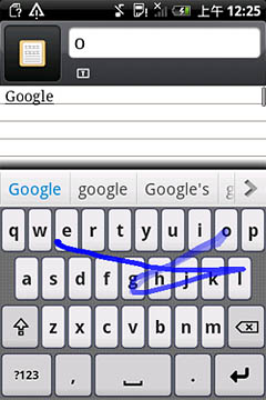 如圖所示,Nuance T9 Trace英文輸入方案對(duì)于各種不同的字母組合都能有效識(shí)別,像“google”這種既有連續(xù)又有間斷重復(fù)字母的單詞也不在話下,一次就能精準(zhǔn)輸出。另外,該輸入法還可以省去標(biāo)點(diǎn)符號(hào),如“don"t”“can"t”等單詞,用戶只需滑觸“d-o-n-t”這四個(gè)字母,輸入法就會(huì)自動(dòng)識(shí)別。