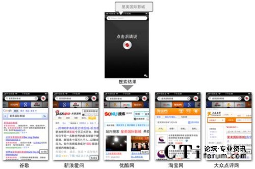 適用于iPhone™、iPad™和iPod touch™的聲龍搜索(Dragon Search)同時(shí)也在蘋果 App Store推出,為用戶提供強(qiáng)大的語(yǔ)音搜索功能。基于該產(chǎn)品,用戶只需說(shuō)出自己的搜索要求,便可通過(guò)移動(dòng)網(wǎng)絡(luò)找到相應(yīng)的信息和答案。 另外,聲龍搜索(Dragon Search)創(chuàng)新的搜索功能界面(Dragon Search Carousel)還可以支持用戶同時(shí)訪問(wèn)包括谷歌、新浪愛(ài)問(wèn)、優(yōu)酷網(wǎng)、淘寶網(wǎng)和大眾點(diǎn)評(píng)網(wǎng)等多個(gè)熱門網(wǎng)站和搜索引擎,并在幾秒鐘內(nèi)獲得來(lái)自多個(gè)內(nèi)容來(lái)源的搜索結(jié)果。