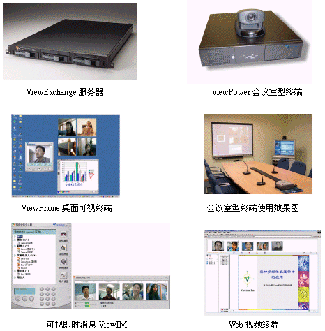如下圖所示,ViewOffice由會(huì)議室型終端ViewPower,客戶(hù)端軟件ViewPhone,客戶(hù)端即時(shí)消息軟件ViewIM,多點(diǎn)控制服務(wù)器ViewExchange