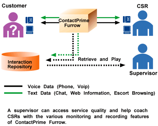 呼叫中心的管理員可通過ContactPrime Furrow對CSR的工作情況進行監(jiān)控并適當?shù)膮f(xié)助他們,這將有助于提高呼叫中心的服務質(zhì)量,并提升用戶滿意程度。