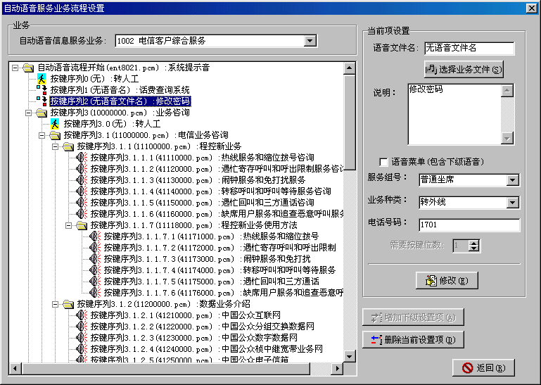 。。智能業(yè)務(wù)管理系統(tǒng)是Utron-CC2000進(jìn)行業(yè)務(wù)擴(kuò)充的主要手段。用戶如需擴(kuò)展新的業(yè)務(wù),主要通過智能業(yè)務(wù)管理系統(tǒng)向Utron-CC2000注冊該業(yè)務(wù);并為系統(tǒng)中的座席分配業(yè)務(wù)。根據(jù)實際業(yè)務(wù)的需求,生成相應(yīng)的系統(tǒng)信箱、業(yè)務(wù)腳本、服務(wù)項目等,來實現(xiàn)新業(yè)務(wù)的動態(tài)加載。