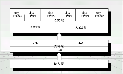 ICM(智能呼叫管理系統(tǒng))是系統(tǒng)支持層的核心,主要完成來電呼叫的接繼控制、客戶應(yīng)用提交等,把相應(yīng)事件提交給IVR或經(jīng)由ACD分配給合適的Agent,完成自動/人工的相互切換等