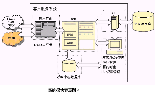 杭州恒生公司的企業(yè)級證券客戶服務(wù)中心,是一個集語音技術(shù)、通信技術(shù)、計算機(jī)網(wǎng)絡(luò)、數(shù)據(jù)庫技術(shù)于一體,支持電話、傳真、電子郵件、Web等多種媒體接入方式的呼叫響應(yīng)中心。它采用先進(jìn)的VOIP技術(shù),是一個基于分布式對象,與業(yè)務(wù)無關(guān)的客戶服務(wù)中心通用平臺。充分考慮現(xiàn)代證券客戶服務(wù)中心所應(yīng)具備的特點,以及現(xiàn)代券商的運作模式。是杭州恒生公司多年的基于板卡式客戶服務(wù)中心的工作經(jīng)驗積累基礎(chǔ)上,采用先進(jìn)的接入設(shè)備,而推出的新一代客戶服務(wù)中心。