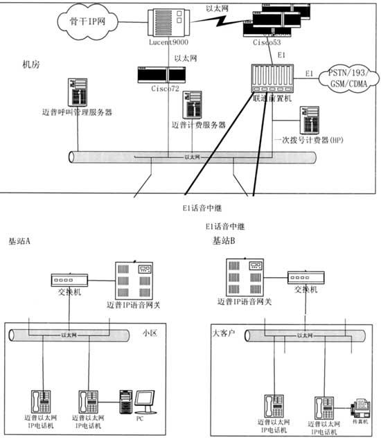 。。在兩個方案中,采用了邁普呼叫管理服務(wù)器、計費服務(wù)器以及以太網(wǎng)IP電話機(jī),分別擔(dān)任呼叫、話音計費等網(wǎng)絡(luò)管理工作。