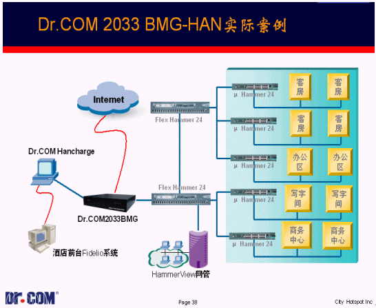 保證內部網絡安全性 Dr.COM2033系統(tǒng)擁有NAT網絡地址轉換技術,相當于防火墻的強大功能,將內部網絡與Internet之間、公司局域網與酒店內部局域網之間實現隔離,保障網絡的安全,并且通過先進的VPN技術,實現與企業(yè)網通過加密通道實現數據傳輸。
