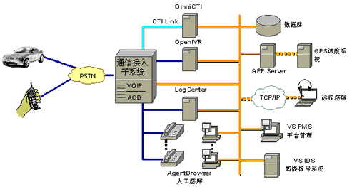 CommSuites For GPS呼叫中心除了提供傳統(tǒng)呼叫中心功能外,還增加了GPS功能,是一個(gè)全方位的解決方案,下面是系統(tǒng)的結(jié)構(gòu)圖: