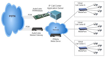 AudioCodes IPmedia™ (IPM) VoIP 媒體處理刀片服務(wù)器,使企業(yè)應(yīng)用的開發(fā)人員能夠通過應(yīng)用程序服務(wù)器在普通機(jī)架中插入媒體網(wǎng)關(guān)功能。