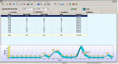 | 按時間統(tǒng)計 | 按照時間對來電以及計費點進(jìn)行統(tǒng)計,并寫從下端的立體折線圖中看到所選的日期內(nèi)各個時間段的呼叫分布數(shù)。 |