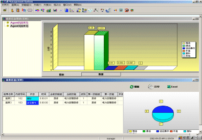 座席狀態(tài)實時監(jiān)控圖形顯示;線路狀態(tài)實時監(jiān)控圖形顯示;按時間以及不同條件進(jìn)行查詢的完善的歷史數(shù)據(jù)分類分析及統(tǒng)計;以統(tǒng)計報表形式提供中心各狀態(tài)及業(yè)績信息作為考評依據(jù);按Excel方式輸出報表,提供進(jìn)一步編輯功能。其所生成的上百張報表,可以協(xié)助企業(yè)有效管理資源,檢查成本,預(yù)測改善現(xiàn)有運作的潛在需求。