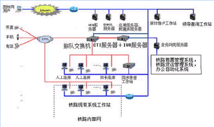 鐵路客戶(hù)服務(wù)中心系統(tǒng)主要是由帶語(yǔ)音板卡的計(jì)算機(jī)或排隊(duì)交換機(jī)、CTI服務(wù)器、IVR服務(wù)器、應(yīng)用服務(wù)器/數(shù)據(jù)庫(kù)服務(wù)器、人工座席系統(tǒng)等硬件設(shè)備和應(yīng)用軟件組成。它以電話服務(wù)為主要服務(wù)方式、結(jié)合計(jì)算機(jī)信息系統(tǒng)的資料數(shù)據(jù),為客戶(hù)提供全方位的服務(wù),包括業(yè)務(wù)查詢(xún)、業(yè)務(wù)咨詢(xún)、業(yè)務(wù)受理、投訴和建議、市場(chǎng)調(diào)查等功能。