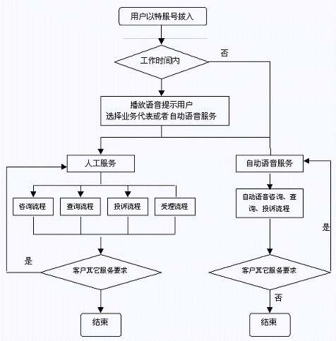 系統(tǒng)提供無人值守的24小時自動語音服務(wù),使用樹型結(jié)構(gòu),讓每一語音通道按照設(shè)定的流程進行循序、分支或跳轉(zhuǎn),自動語音逐步引導(dǎo)來話者選擇電話按鍵,實現(xiàn)信箱留言、投訴舉報錄音、投訴處理結(jié)果查詢、自動咨詢、民意調(diào)查等。當(dāng)用戶撥通12345電話并選擇自動服務(wù)時,系統(tǒng)自動播放類似下面的引導(dǎo)語"選擇市長(縣長)信箱留言請按1,自動投訴舉報請按2,投訴查詢請按3,服務(wù)咨詢請按4,民意調(diào)查請按5"。系統(tǒng)還可根據(jù)咨詢者要求,以自動傳真、電子郵件等方式自動發(fā)送有關(guān)查詢結(jié)果資料。