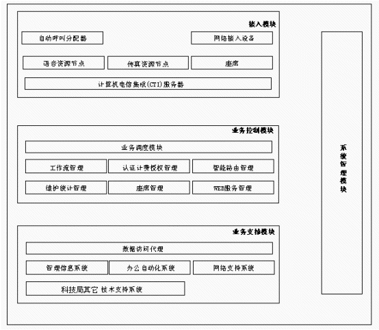 由于原有的電話(huà)系統(tǒng)普遍采用人工方式,工作效率低(如經(jīng)常出現(xiàn)忙音或占線(xiàn)現(xiàn)象)、信息共享能力差,線(xiàn)路數(shù)量少、受話(huà)能力低,越來(lái)越不能滿(mǎn)足企業(yè)或個(gè)人的需要,科技局電話(huà)難打成為企業(yè)與個(gè)人反映強(qiáng)烈的意見(jiàn)和呼聲。有必要運(yùn)用現(xiàn)代通信網(wǎng)絡(luò)技術(shù)和計(jì)算機(jī)技術(shù),即客戶(hù)服務(wù)中心(也稱(chēng)為呼叫中心,CALL