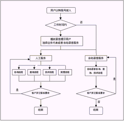 本呼叫中心平臺(tái)的系統(tǒng)軟件為方便應(yīng)用業(yè)務(wù)的快速生成及開(kāi)發(fā),采用了類(lèi)智能化的處理,如呼叫的應(yīng)答、呼叫的處理流程及語(yǔ)音處理等等都可在無(wú)需編程的情況下進(jìn)行修改,這樣可以靈活的根據(jù)業(yè)務(wù)的需要來(lái)調(diào)整系統(tǒng)的處理。