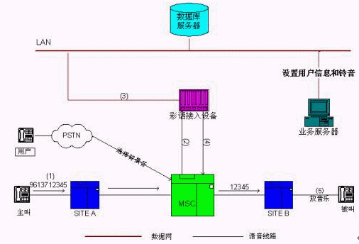 2. MSC接收到本呼叫后,把該呼叫路由到彩話接入服務器;