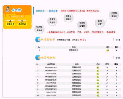 - "彩話DIY"服務:通過IVR自己錄制BGM素材或通過因特網(wǎng)上傳BGM素材;