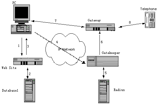 IP800服務(wù)做為先進(jìn)科技的具體應(yīng)用,以分組語音、語音編碼和壓縮、QoS等技術(shù)為核心,采用了國際標(biāo)準(zhǔn)H.323協(xié)議。系統(tǒng)由關(guān)守、網(wǎng)關(guān)、網(wǎng)管服務(wù)器、計(jì)帳服務(wù)器、檢測(cè)服務(wù)器、緩沖服務(wù)器、呼叫服務(wù)器、RS服務(wù)器等模塊組成,參考下圖: