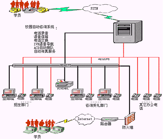 學員利用電話方式,可方便快捷的查詢教育培訓機構的介紹、開設課程情況介紹、教學地點情況介紹等信息。系統還可預置相關介紹內容的傳真件,供學員按需自助索取。