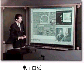電子白板是經(jīng)常用來(lái)輔助視頻會(huì)議數(shù)據(jù)應(yīng)用的外設(shè),簡(jiǎn)單的講,它是計(jì)算機(jī)的一個(gè)外圍設(shè)備或終端,它既可象傳統(tǒng)黑板一樣的使用,又可作為投影儀的幕布,同時(shí)它還是一個(gè)大型的電腦觸摸屏。電子白板與計(jì)算機(jī)串口相連,支持Netmeeting軟件,實(shí)現(xiàn)白板共享、異地實(shí)時(shí)互動(dòng)。響應(yīng)速度快,分辨率高。