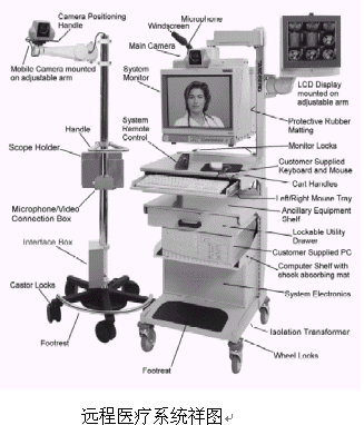 遠(yuǎn)程醫(yī)療系統(tǒng)除需要高清晰度的圖像質(zhì)量外,需要提供專(zhuān)用的系統(tǒng)調(diào)看、傳送醫(yī)學(xué)影像圖片,如CT、核磁共振照片等。必要時(shí)還需要聯(lián)接醫(yī)用光學(xué)系統(tǒng),如內(nèi)窺鏡等,將醫(yī)學(xué)圖像傳送到會(huì)議中。這要求視頻會(huì)議系統(tǒng)有豐富的接口配置和良好的擴(kuò)展能力。一些視頻會(huì)議廠家,如TANDBERG,已可以提供專(zhuān)用的遠(yuǎn)程醫(yī)療系統(tǒng)。